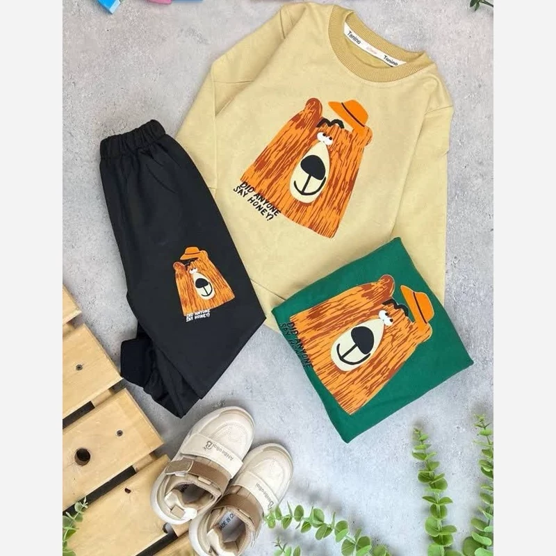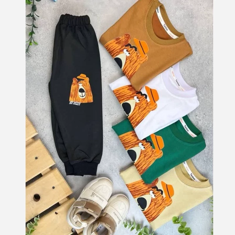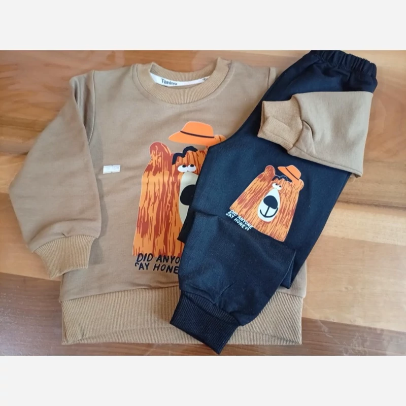 بلوز شلوار بچگانه خرس کلاه دار سایز 35-40 پارچه دورس