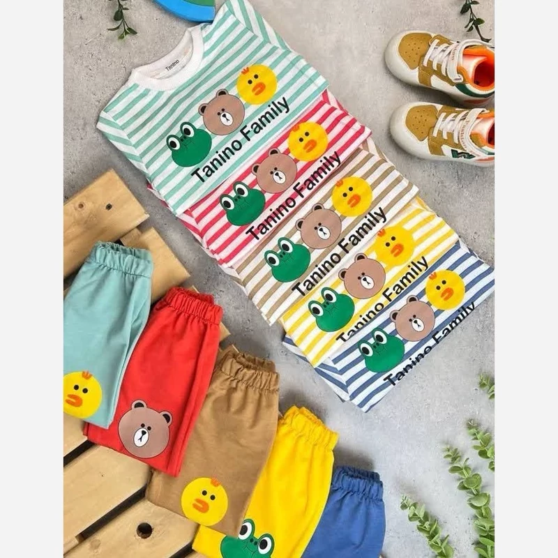 🌴 بلوز شلوار راه راه 🌴پنبه دورس با کیفیت عالی 🌴سایز:45-50 رنگبندی : طبق تصویر قواره آزاد تا 7 سال