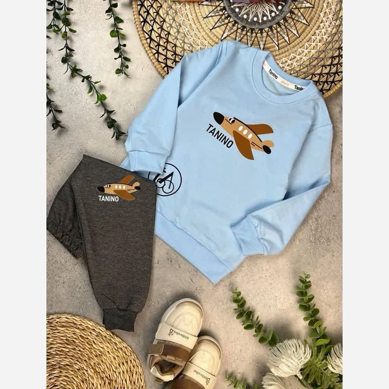 🌴 بلوز شلوار پسرانه هواپیما 🌴پارچه دورس با شلوار ملانژ گلکسی با کیفیت عالی 🌴سایز:35-40 رنگبندی : طبق تصویر