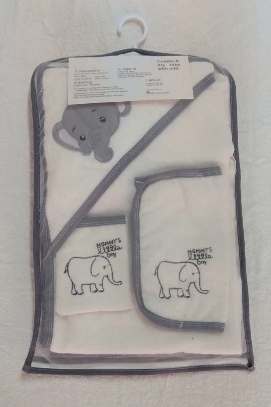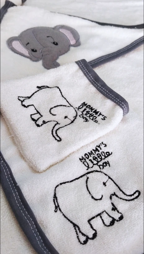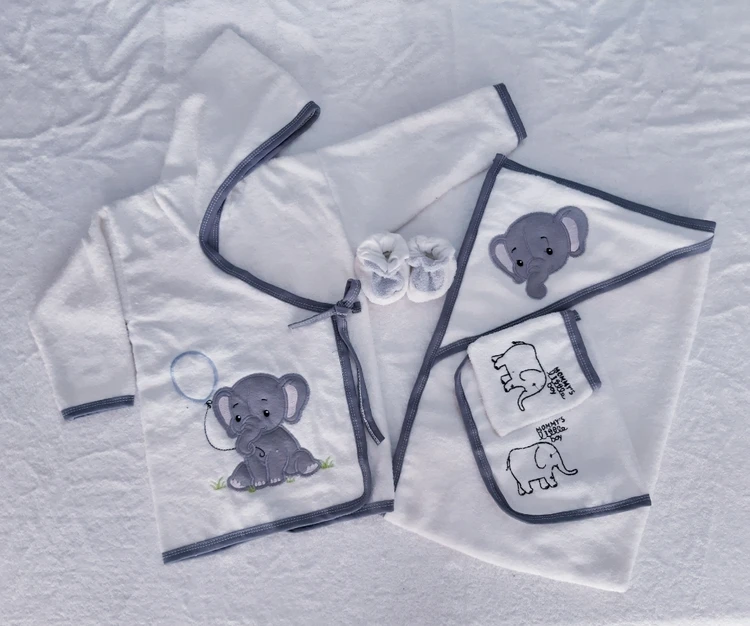 حوله نوزادی 5 تکه رنگ سفید طرح فیل شامل: