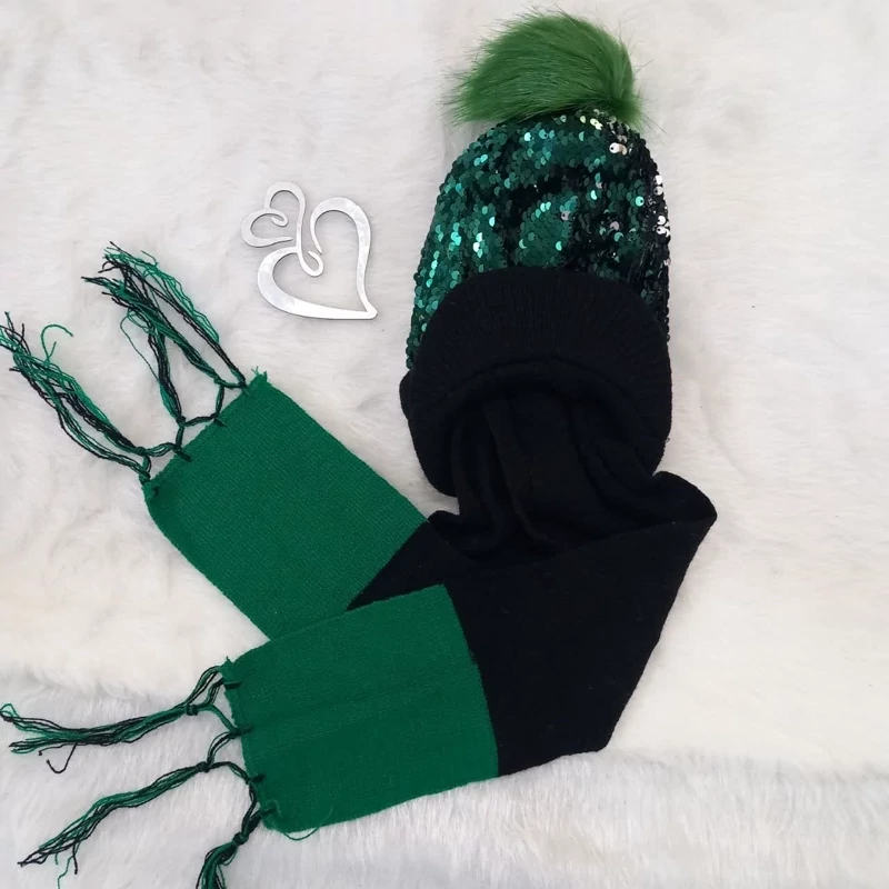 این کلاه زیبا پولکی هست شالگردن به کلاه از داخل متصل هست طول هر شالگردن 42 سانت این کلاه مناسب نوزادی تا حدودا یک سال و نیم هست بستگی به جثه سر کودک دلبند شما داره کلاه لبه دار هست